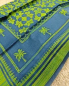 The vibrant green dupatta complements the blue shirt perfectly, adding a pop of color and completing the summer-ready look. The printed design of the dupatta adds an extra layer of visual interest.