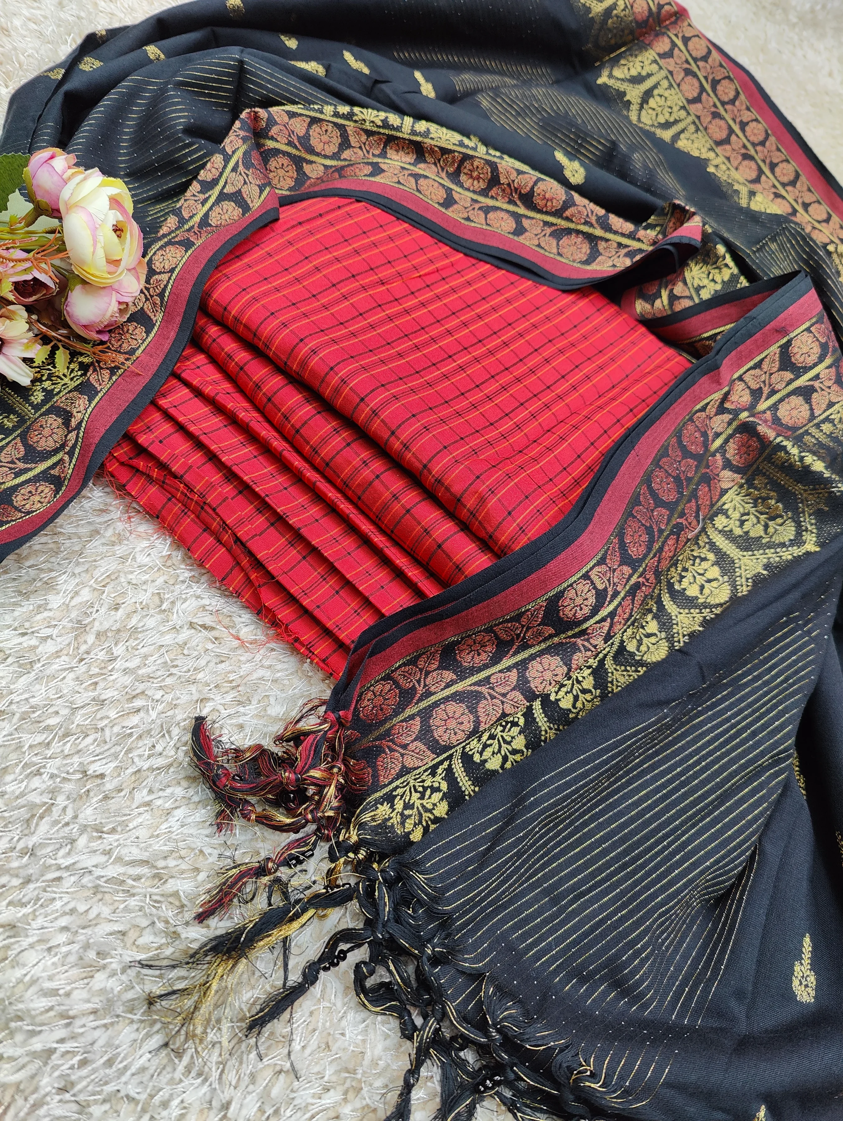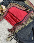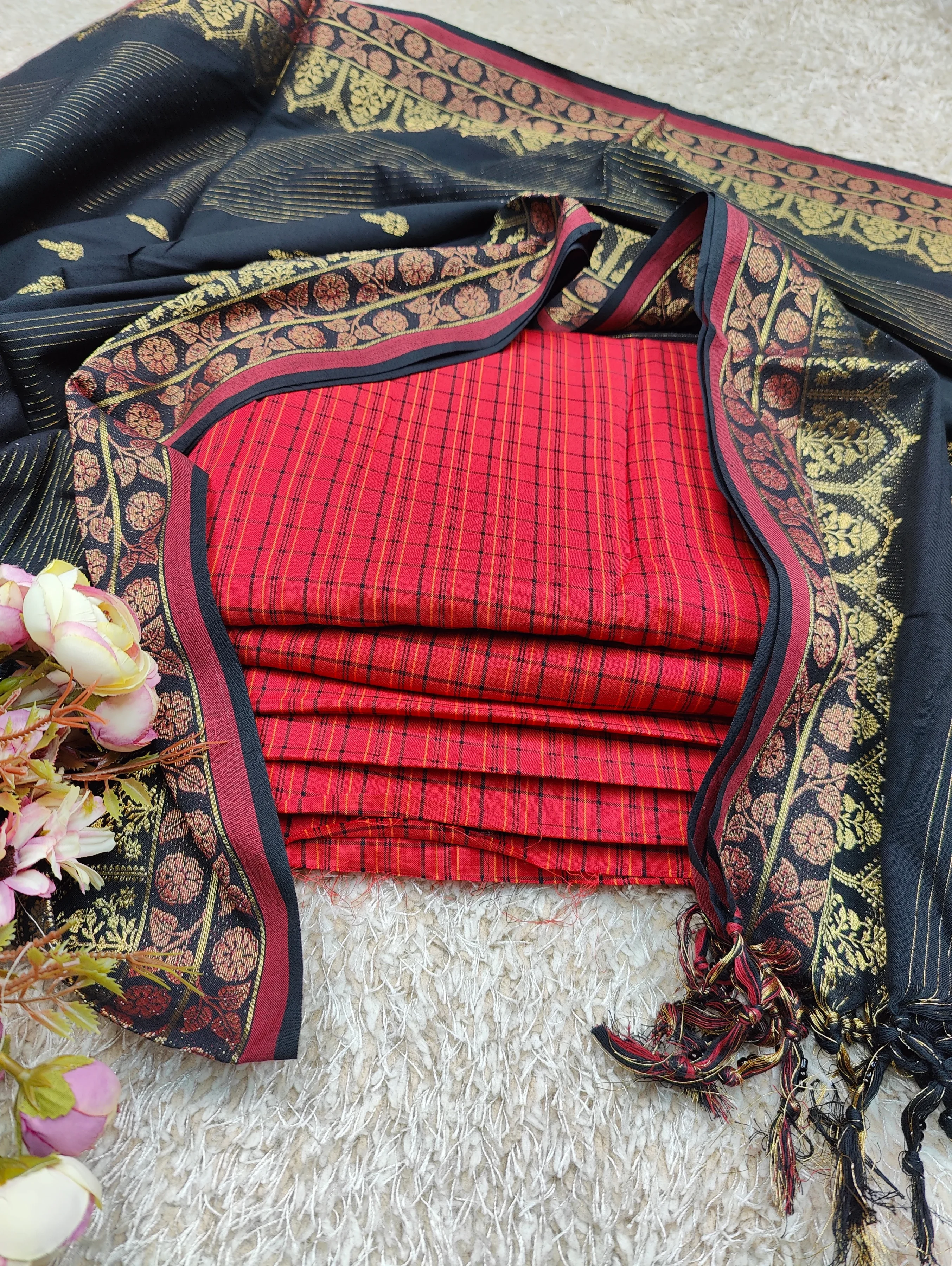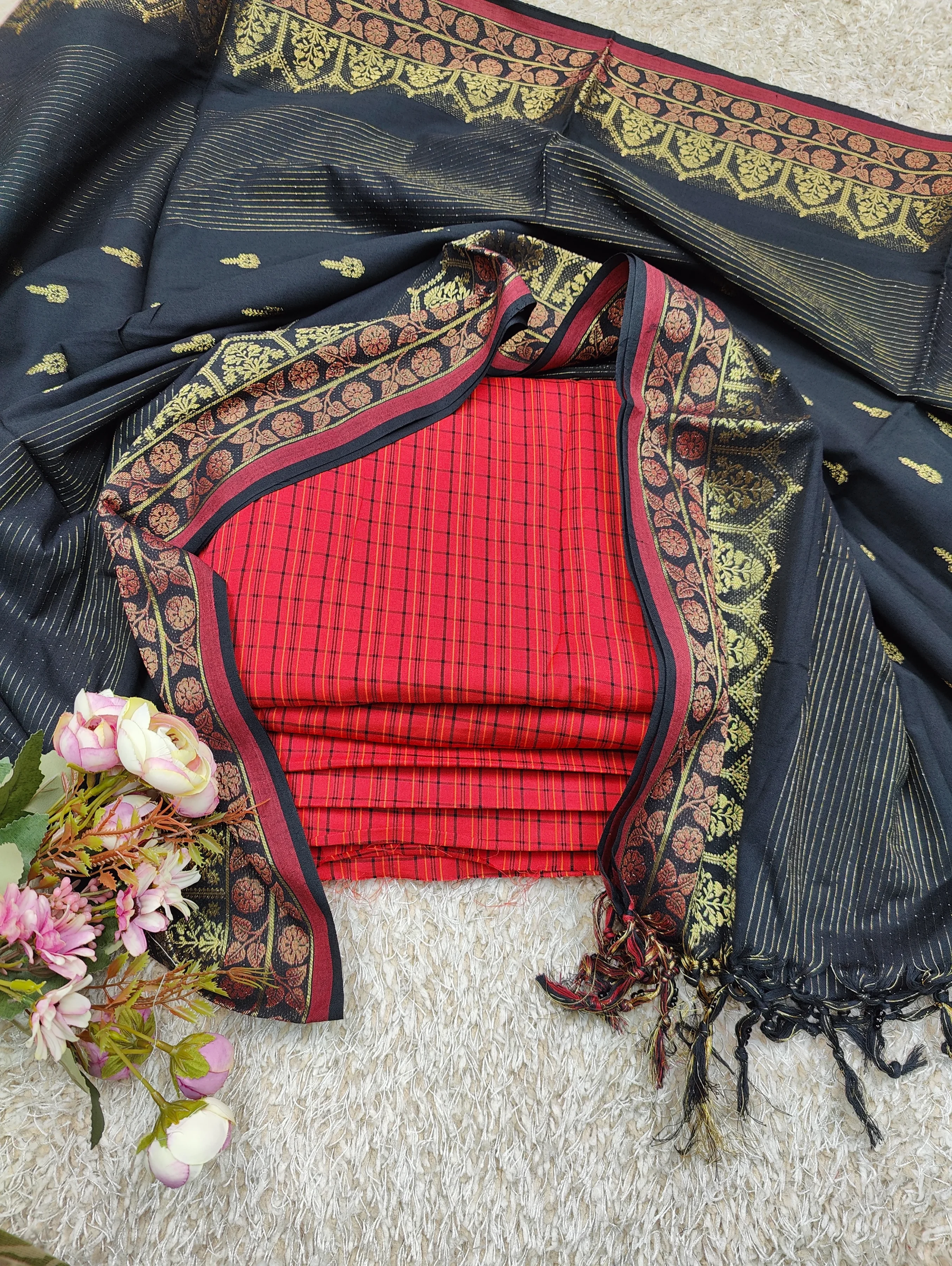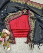 J. Red & Black Allover Print Suit with Luxury Shawl | Mix 3 pcs