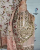 Featuring premium quality silk fabric adorned with intricate embroidery work, this ensemble showcases the pinnacle of Pakistani wedding fashion. Each detail has been carefully designed to create a harmonious blend of traditional craftsmanship and contemporary style.